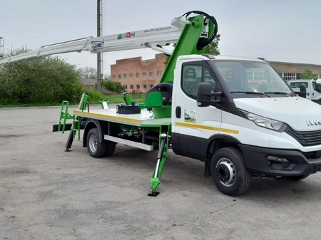 - Максимальна робоча висота 24 м з максимальним вильотом 14 м